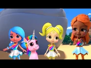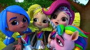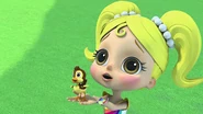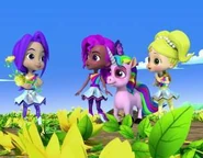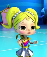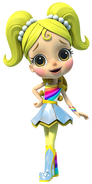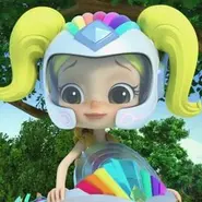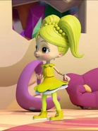Anna Banana is naive and sweet and can talk to animals. She represents the color Yellow and possesses Animal Power, being able to communicate with animals. She carries a yellow stuffed rabbit, Mr. Stuffie Wuffie, which is used for comforting animals. She is voiced by Juliette Crosbie.