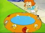 - During the Warner Brothers 65th Anniversary Special, Elmyra congratulates the Warners before a cut to commercials.