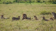 The Masai lion or East African lion (Panthera leo nubica) is a lion subspecies that is found in eastern Africa. This specimen is described as being from "Nubia". The subspecies includes previously recognized subspecies like massaica, which was initially described from the Tanganyika Territory in Eastern Africa. Neumann first described the Masai lion as being less cobby with longer legs and less curved backs than other lion subspecies. Males have moderate tufts of hair on the knee joint, and their manes are not full but look like combed backwards. Male East African lions are generally 2.5–3.0 metres (8.2–9.8 feet) long including the tail. Lionesses are generally smaller, at only 2.3–2.6 metres (7.5–8.5 feet). Lions, male or female, have a shoulder height of 0.9–1.10 metres (3.0–3.6 feet). In weight, males are generally 145–205 kg (320–452 pounds), and females are 100–165 kg (220–364 pounds). As such, it would have been heavier than average Southern African lions (Kalahari, Southeast or Southwest African lions) that weighed under 230 kg (510 pounds), but not any exceptionally large Southern African lion that weighed above 272 kilogrammes. Male Masai lions are known for a great range of mane types. Mane development is related to age: older males have more extensive manes than younger ones; manes continue to grow up to the age of four to five years, long after lions have become sexually mature. Males living in the highlands above 800 m (2,600 ft) altitude develop heavier manes than lions in the more humid and warmer lowlands of eastern and northern Kenya. The latter have scanty manes, or are even completely maneless. The Masai lion was first described on the basis of observations in northern Uganda, near Kavirondo and in southern Kenya, as well as near Lake Manyara, around Mount Kilimanjaro and in the Tanga Region.