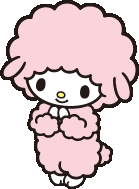 She's My Melody's best friend. She is a sheep with soft pink fur covering her low ears, a round tail, white skin, and a yellow oval nose. In Onegai My Melody she cannot speak, and only communicates through sheep noises however she's capable of speaking in other sources of media such as Hello Kitty Seasons. Her personality is described as soft, kind, and girly. Her birthday is July 6th.
