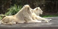 The white lion or bleached lion (Panthera leo krugeri) is a rare color mutation of the Transvaal Lion. Up until 2009, when the first pride of white lions was reintroduced to the wild, it was widely believed that the white lion could not survive in the wild.